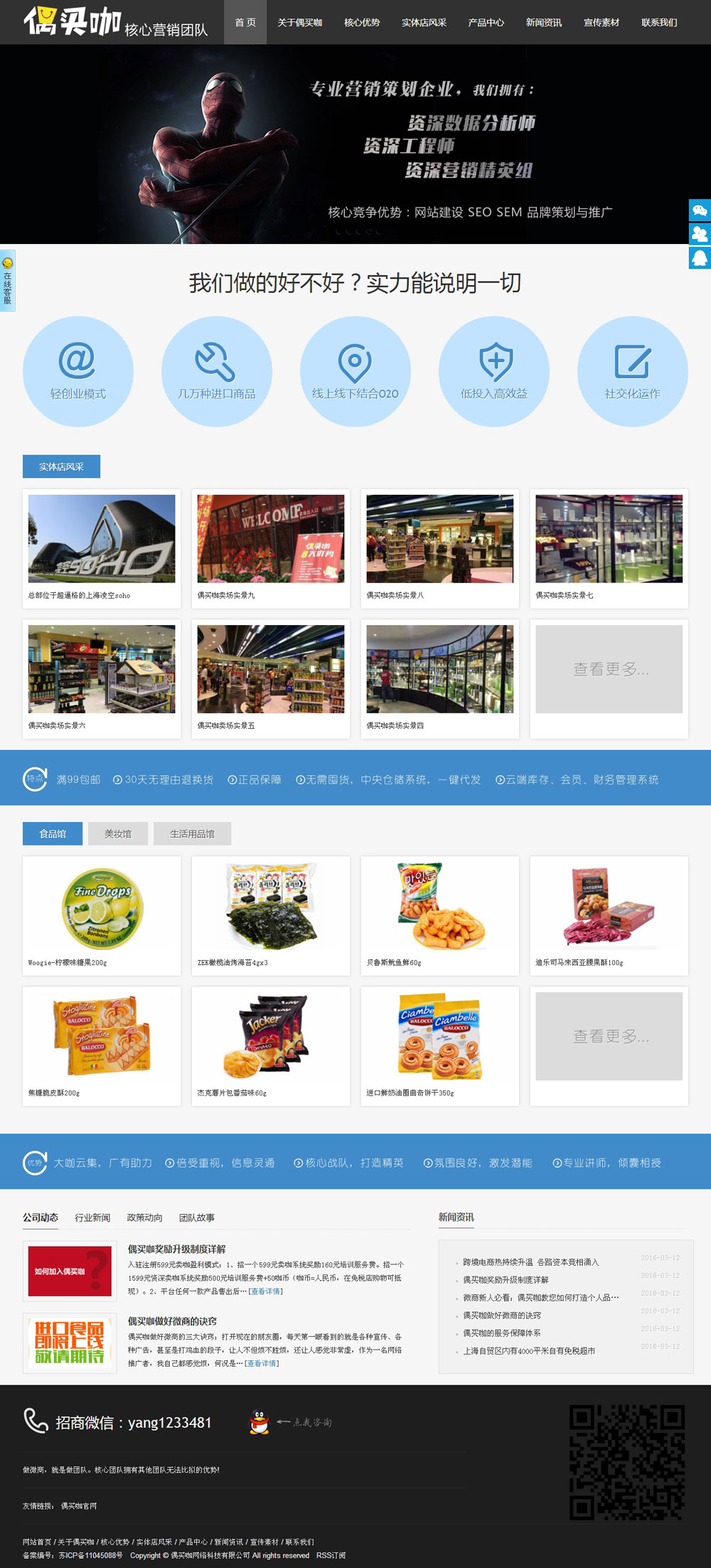 中国首家主打社交+轻创业微商营销模式的O2O平台,是由上海偶买咖网络科技有限公司控股,并负责运营管理,并与全球1000多家国际品牌结成战略联盟。偶买咖平台根据微商的发展瓶颈及趋势,确定了发展战略,打开了全新的社交+轻创业互联网模式,以免税店为基础实现一键实现微商轻创业,打造国内最具诚信、品质、社交的微商平台。并在运营中不断改进、创新使得公司的模式以及理念走在了国内的前沿。这是全新的一个微商平台,微商加入平台可以拥有自己的免税店铺,店里包含了母婴、美妆、食品、保健品、奢侈品、服装、鞋子、进口汽车等等最畅销的数万种全进口产品。平台提供宣传、客服等售后保障,从而实现一键轻创业。